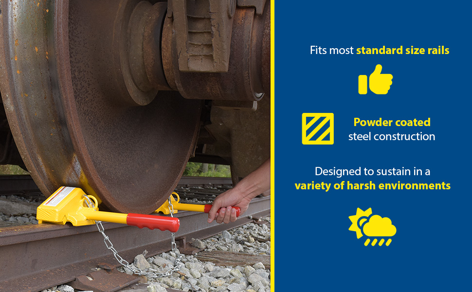SRC/FRC SRC/FRCSteel Single Rail Chock with Flag Rail Chock 30 In. Long Chain YellowFlag Handle Length (in.): 36