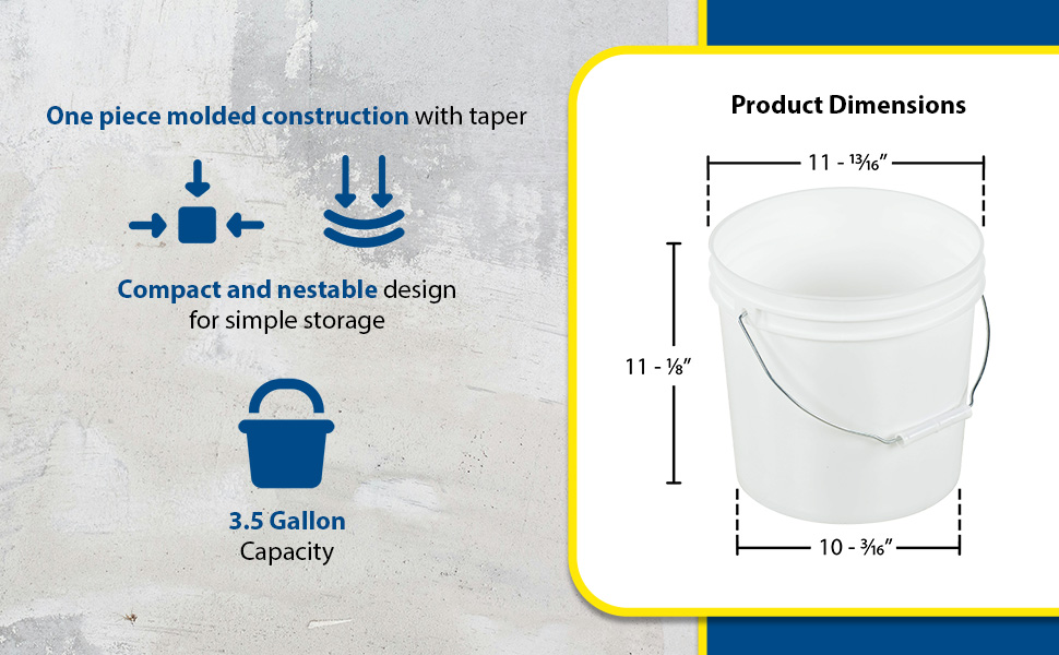 PAIL-35-PWS PAIL-35-PWSHigh Density Polyethylene Open Head Pail with Steel Handle 11-13/16 In. x 11-13/16 In. x 11-1/8 In. 3-1/2 Gallon WhiteUniform Capacity (gal.): 3.5