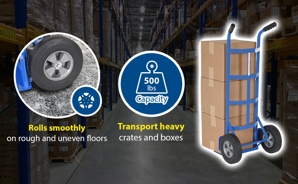 Maximize control for different loads with our Dual Handle Hand Trucks. These hand trucks can transport boxes or crates wherever they are needed. Transport loads smoothly and evenly over rough or uneven floors. Ships knockdown. Choose steel or aluminum, available with pneumatic or solid rubber wheels. Assembly required.