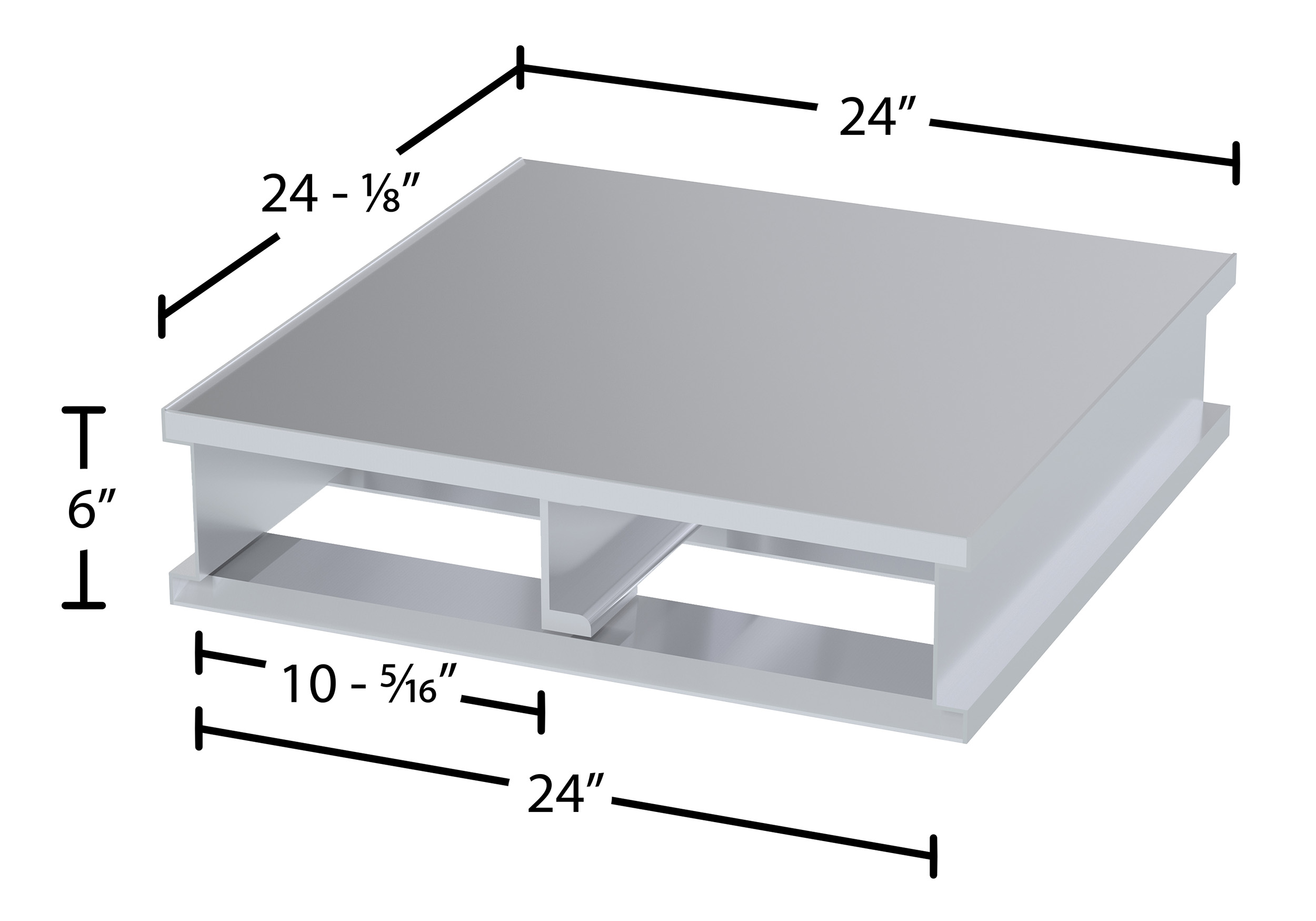 Dimensions: 24"W x 24"L x 6"H Sell UOM: -- Color: Silver