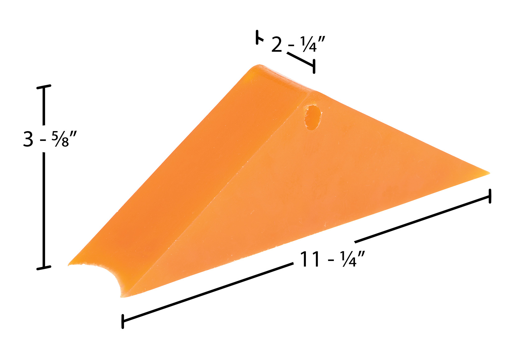 Polyurethane Magnetic Rail Car Wheel Chock 11 In. x 2-1/4 In. x 3-5/8 In. OrangeThe magnetic rail car Wheel Chock is designed to stabilize rail car wheels while loading and unloading. Standard features include; rail track attaching magnets for extra grip, pick up holes for easy transportation, a polyurethane material design for durability and longevity, and an orange color for safety.